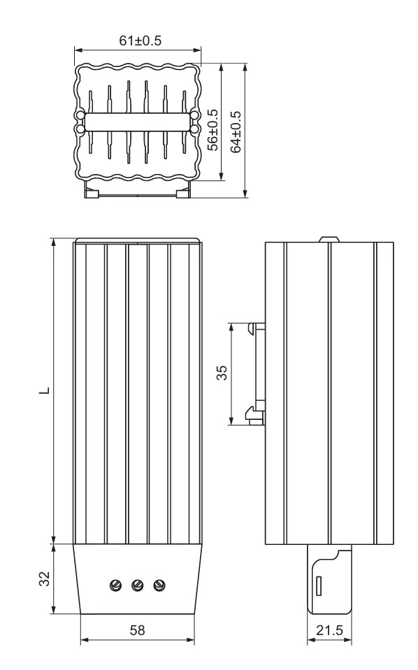 The heater is designed specifically for cabinet use. It is ideal for dehumidification inside electrical cabinets. It effectively prevents condensation build-up.