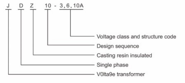 J = Voltage Transformer, D = Single Phase, Z = Epoxy Resin Cast Insulation, 3/6/10 = Voltage Level.