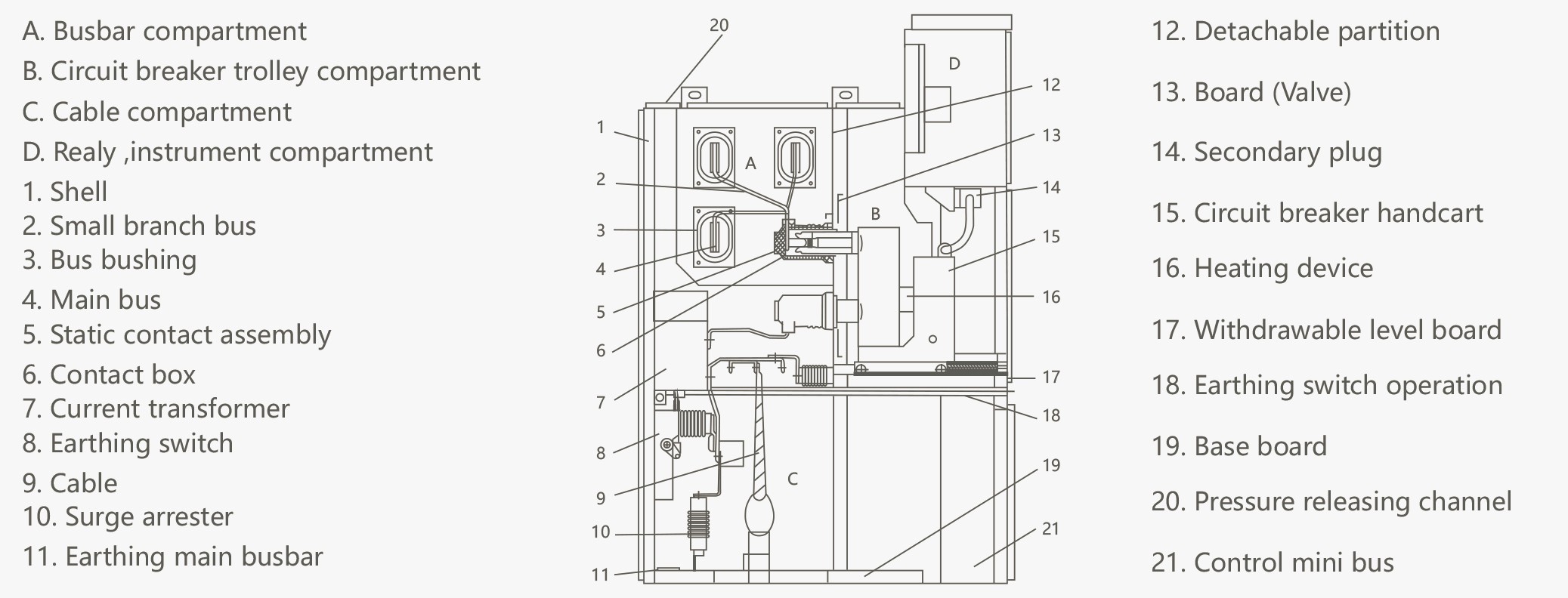 Versatile compatibility: This switchgear can be used with ZN63A (VS1), VD4, ZN21, 3A1-1, VB2, VEP vacuum circuit breakers, VC7 contactors, load switches, and disconnecting switches.