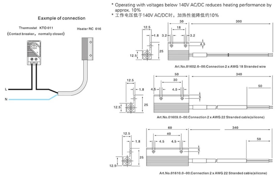 The heater uses advanced PTC semiconductor technology. It provides constant temperature control for electrical cabinets.Its main functions are as follows: